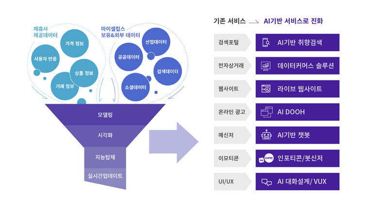 최근 많은 기업들이 AI 관련 연구 및 시범 사업을 운영하고 있지만, 마이셀럽스는 인터넷 시대 초기 IT화를 주도하던 웹에이전시의 사업 모델과 같이 초기 B2B 사업 모델에 주력하여, 실제 비즈니스에 적용 가능한 AI를 공급함으로써 독보적인 입지를 꾸준히 다져왔다.