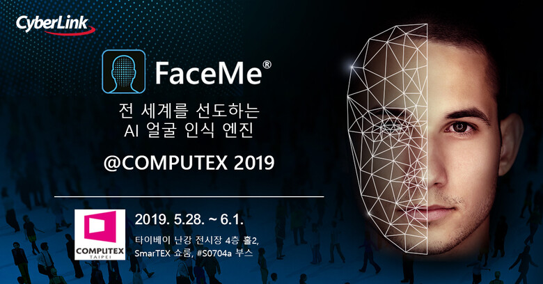 AI(인공지능) 기반 얼굴 인식 기술의 선두주자 CyberLink(사이버링크)가 5월 28일부터 6월 1일까지 열리는 Computex(컴퓨텍스) 2019에서 페이스미(FaceMe®) 얼굴 인식 엔진을 선보인다.