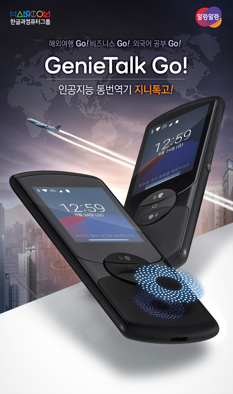 한글과컴퓨터(대표이사 김상철, 이하 한컴)는 인공지능 통번역기 ‘말랑말랑 지니톡 고!’(이하 ‘지니톡 고!’)를 출시했다고 17일 밝혔다.
