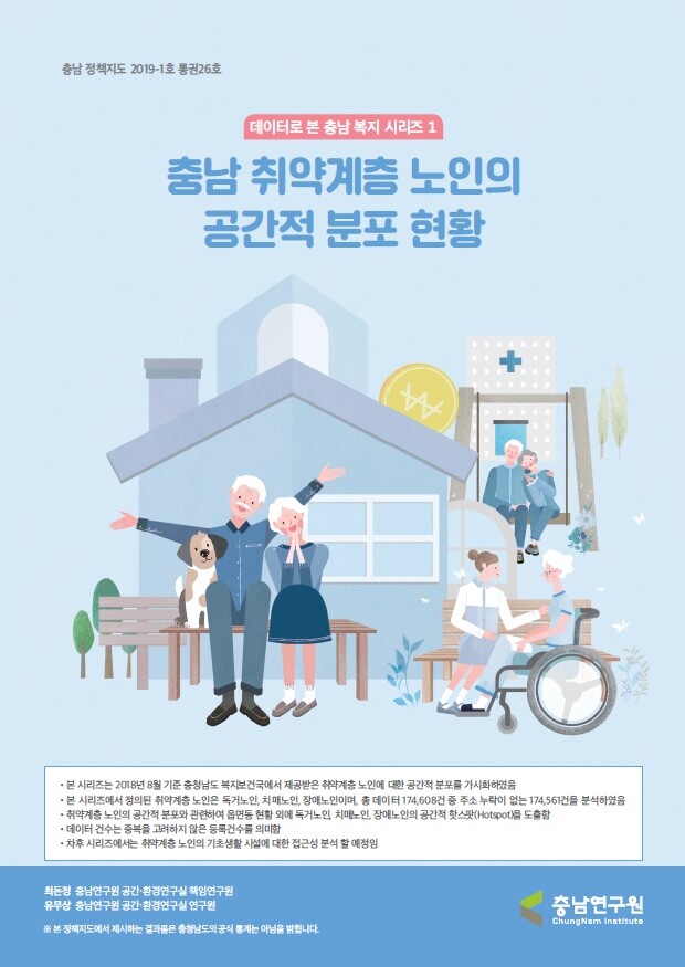 충남연구원은 ‘노인 취약계층’을 주제로 ‘데이터로 본 충남 노인복지 시리즈 1(정책지도 제26호)’을 제작했다고 24일 밝혔다.