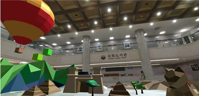 헬로앱스는 사용자들이 국회도서관을 배경으로 드론, 과학 및 VR 게임 등을 체험할 수 있도록 했으며, 컨베이어벨트를 통해 사용자가 대여 요청한 책이 전달되는 과정을 360 VR 영상으로 즐길 수 있도록 했다.