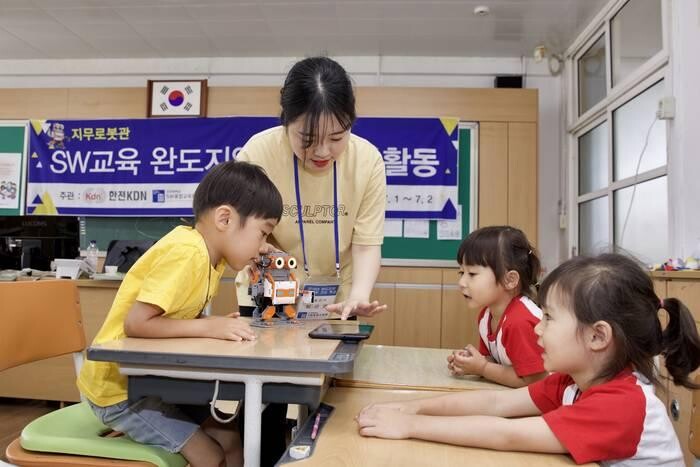 한전KDN(사장 박성철)이 지난 1일부터 2일까지 이틀 동안 전남 완도군 신지면 신지초등학교에서 신지초, 신지동초, 군외초등학교 150여 명의 학생들을 대상으로 SW(소프트웨어) 가치 확산을 위한 SW코딩교육기부활동을 펼쳤다고 4일 밝혔다.