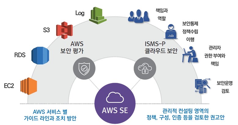 Cloud SE for AWS 서비스는 아마존웹서비스(Amazon Web Services, 이하 AWS) 퍼블릭 클라우드 이용 고객을 위한 클라우드 보안 컨설팅이다. 싸이버원이 자체 개발한 AWS 보안 진단 항목과 ISMS-P에서 제시하는 클라우드 보안 통제항목을 기반으로 클라우드 보안 성숙도를 측정하는 서비스이다.