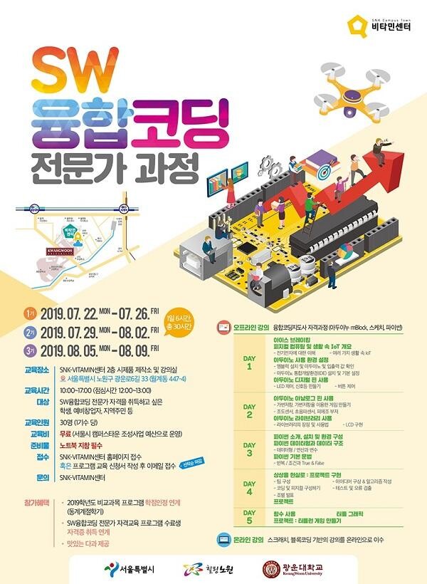 광운대학교 SNK-비타민센터가 'SW(소프트웨어)융합 코딩 전문가 교육 프로그램' 참가자를 모집한다고 11일 밝혔다.