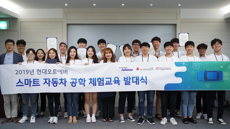 현대오토에버가 사회복지법인 아이들과미래재단과 함께 추진하는 ‘스마트자동차 공학 체험교육’ 사업이 7월 11, 12일 1박 2일간 안양 블루몬테 유스호스텔에서 진행된 대학생 멘토단 발대식을 시작으로 본격적인 일정에 들어간다.