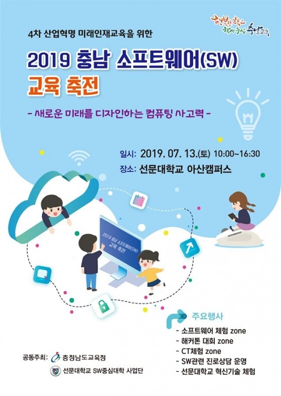 아산 선문대학교(총장 황선조)는 지난 13일 선문대 아산캠퍼스에서 '새로운 미래를 디자인하는 컴퓨팅 사고력'이라는 주제로 '2019 충남 소프트웨어(SW) 교육 축전'을 개최했다고 15일 밝혔다.