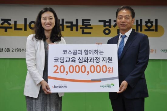 코스콤은 초록우산어린이재단에 저소득가정 아동들을 위한 코딩교육 지원금을 전달했다고 23일 밝혔다.