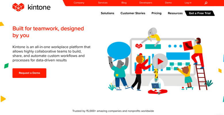Kintone은 일본 사이보즈사에서 제공하는 로우 코드 플랫폼이다. 시각적으로 알기 쉬운 화면으로 구성되어 있고, 드래그 앤 드롭을 하면서 앱을 만들 수 있다. 다양한 분야의 샘플 앱이 준비되어 있어, 원활한 앱 제작이 가능하다. 자바스크립트나 CSS 파일을 사용해 커스터마이징도 할 수 있다. 클라우드 서비스를 제공하므로 인터넷에 연결되기만 하면 언제 어디서든 이용할 수 있다는 장점이 있다.