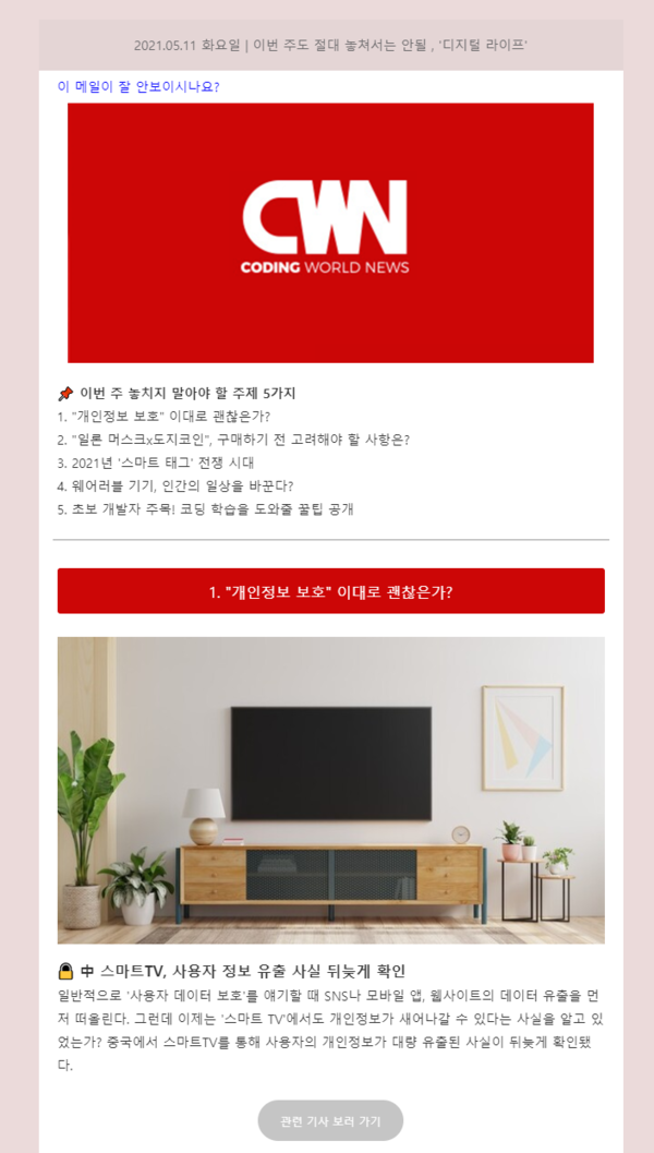 - 어디서 볼 수 있지? 코딩월드뉴스 뉴스레터 구독