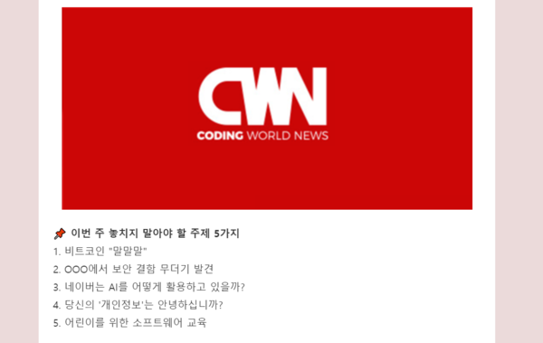 5월 11일 코딩월드뉴스 뉴스레터 중