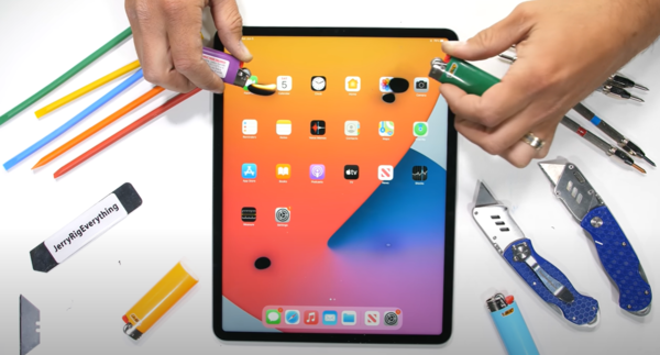 이에, 구독자 676만 명을 보유한 미국의 인기 테크 유튜버 제리리그에프리띵(JerryRigEverything)이 M1 칩과 미니LED 디스플레이를 장착한 12.9인치 아이패드 프로의 내구성 테스트 영상을 게재했다.