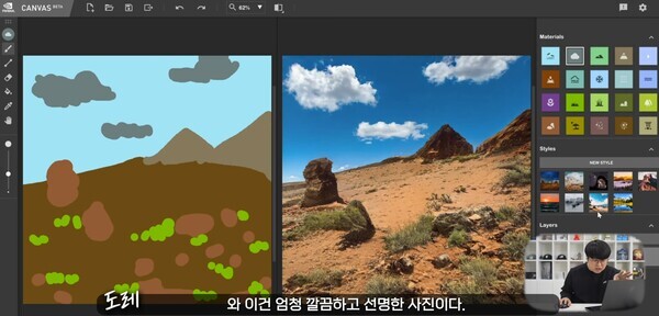 인기 IT기술 전문 유튜버 '도레'가 인공지능 컴퓨팅 회사 엔비디아(NVIDIA)에서 제공하는 AI 페인팅 웹 어플리케이션(앱) 'NVIDIA Canvas(이하 캔버스 앱)'에 대한 리뷰를 진행했다.