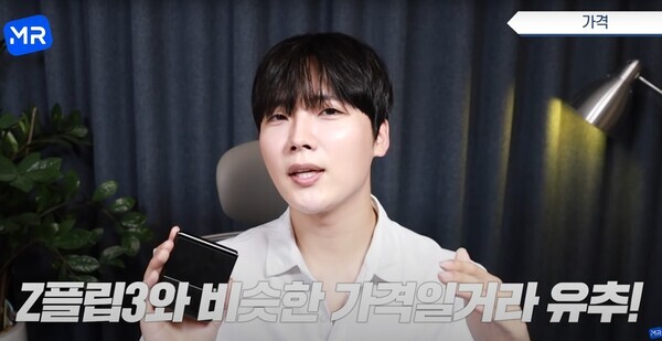 엠알은 그 다음 순서로 Z플립4 예상 가격을 소개했다. 1세대 Z플립은 165만원이란 높은 가격으로 출시됐고, 후속작인 Z플립3은 가격을 굉장히 많이 낮춘 125만4000만원에 출시됐다. 그 차기작인 Z플립4는 Z플립3와 비슷한 가격일거라 유추되고 있다.
