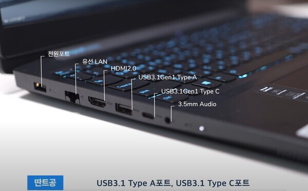 아이디어패드 3i는 주로 제품 좌측에 포트들을 몰아넣었다. 이에 좌측에는 USB3.1 A타입과 C타입 각 1개씩, 오디오 콤보(3.5mm), HDMI 2.0, 유선LAN, 전원 포트가 있고, 우측에는 USB3.1 A타입만 1개 있다.