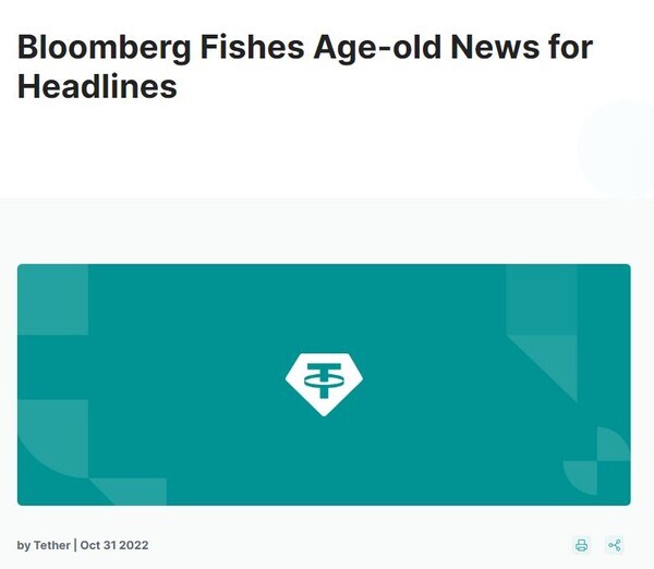 1일(현지시간) 테더는 "블룸버그는 2018년 11월부터 수년간 미 당국의 테더 조사에 대해 부정확한 내용으로 보도해왔다. 최근 보도는 이를 재활용한 것에 불과하다. 테더 임원들은 1년이 넘는 시간동안 어떤 조사도 받은적 없으며, 미국 법무부와 아무런 교류도 없었다.