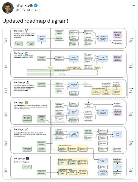 이더리움 창업자 비탈릭 부테린이 업데이트된 이더리움 프로토콜 로드맵을 공유했다.