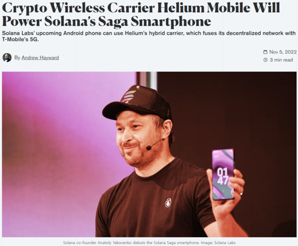 헬륨-솔라나랩스 파트너십 체결..."헬륨 모바일을 솔라나폰 '사가'에 제공 예정"