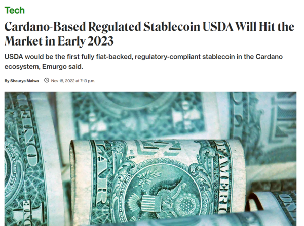 카르다노(에이다) 벤처캐피털 및 엑셀러레이터 부문 이머고(EMURGO)가 내년 초 미국 달러 연동 스테이블코인 USDA를 출시한다고 밝혔다.