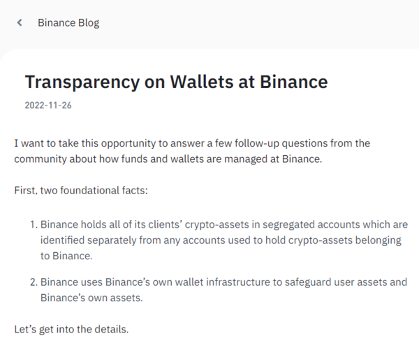 바이낸스가 공식 블로그를 통해 "바이낸스는 자체 암호화폐 자산과 고객 자산을 보관하는 계정을 별도로 둔다. 또한 자체 월렛 인프라를 사용해 고객 자산과 자체 자산을 모두 보호하고 있다. 고객 자금은 절대 사용하지 않는다"고 재차 강조했다.