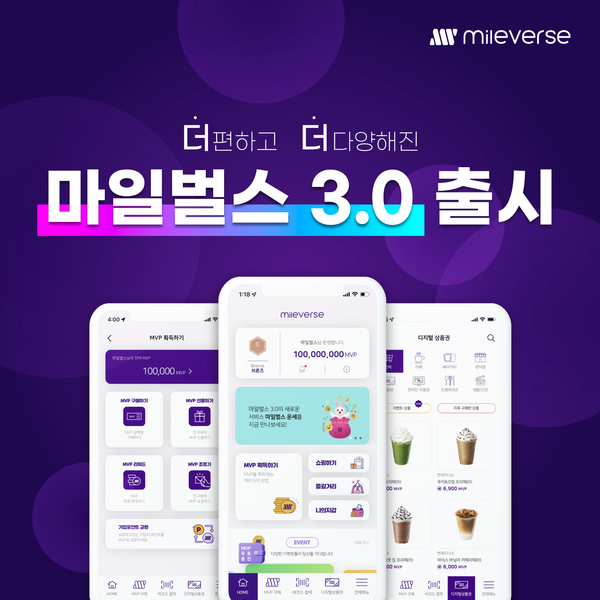 마일벌스는 이번 업데이트는 마일벌스 포인트(MVP)의 생태계를 보다 활성화하고,기존 버전에 비해 사용자 편의성을 고려하여 UX/UI의 많은 부분이 개선 되었다고 전했다. 또한, 회원 참여율을 높일 수 있는 새로운 기능도 추가했다.