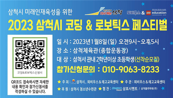 강원도 삼척시가 '삼척시 코딩&로보틱스 페스티벌'을 개최할 예정이다.