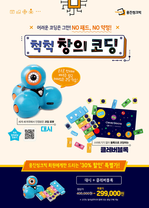 웅진씽크빅이 코딩 학습 솔루션 ‘척척창의코딩’과 ‘창의스팀’의 추가 커리큘럼을 오픈한다.