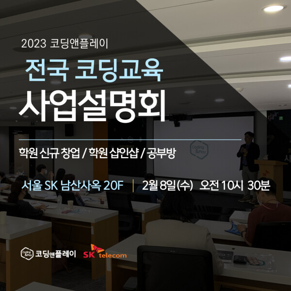 코딩앤플레이가 2023년 신학기를 맞이해 ‘2023 AI코딩교육 학원 프랜차이즈 가맹 사업설명회’를 실시한다.