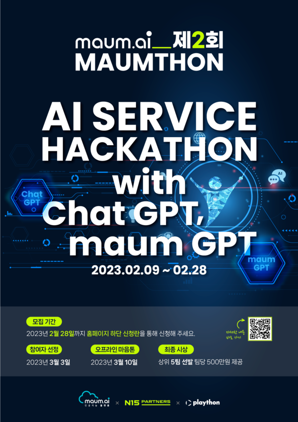 마인즈랩이 주최하고 엔피프틴파트너스가 운영하는 '제2회 마음톤'이 개최된다. 마음톤은 마인즈랩이 개발 및 운영하는 AI API 커넥터 마음오케스트라를 활용한 해커톤을 뜻한다.