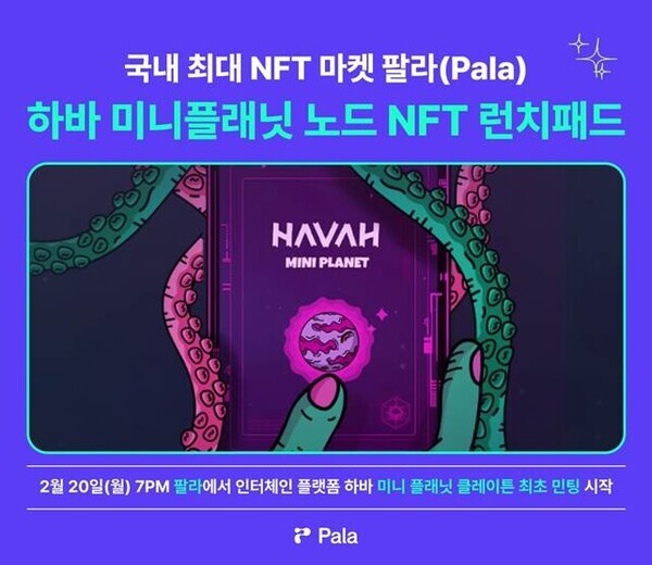 국내 최대 NFT 마켓을 운영하는 팔라(Pala)가 오는 20일(월) 인터체인 플랫폼 하바(HAVAH)의 미니플래닛 노드 NFT 런치패드를 진행한다.