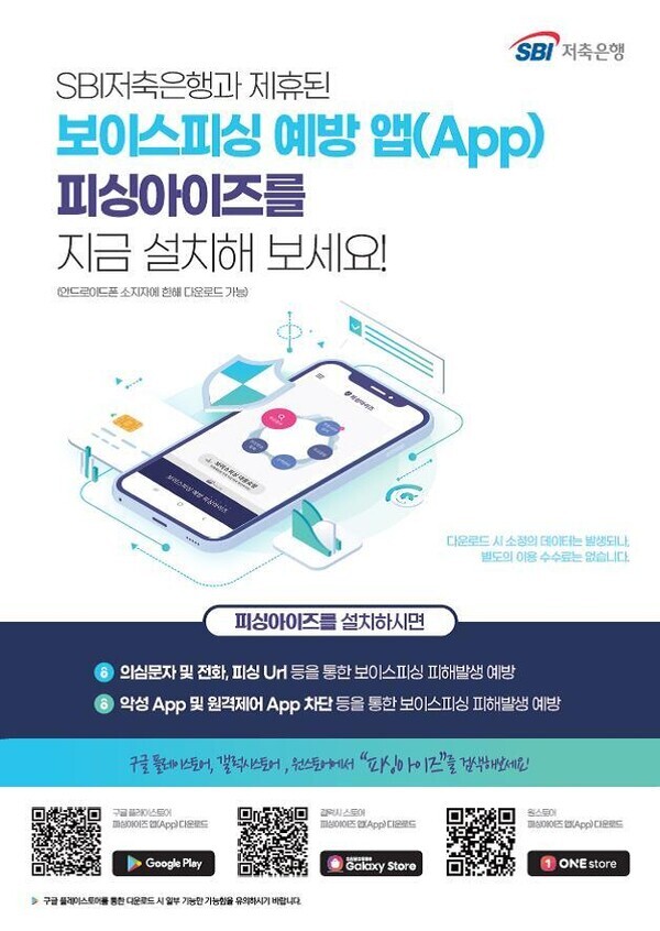 SBI저축은행이 보이스피싱으로부터 금융소비자들의 자산을 지키기 위해 보이스피싱 사전예방 앱인 '피싱아이즈' 서비스를 제공하고 있다.