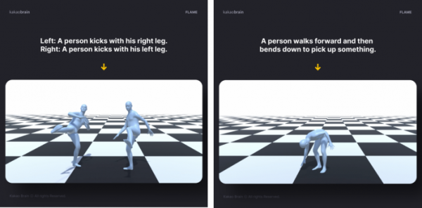 카카오브레인은 인공지능 학회 ‘AAAI(Association for the Advancement of Artificial Intelligence) 2023’에서 고려대학교 최성준 교수 연구실과 공동 연구개발한 텍스트 기반 모션 생성 모델 ‘FLAME(플레임)’을 발표했다.