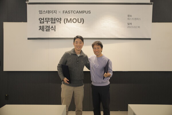 패스트캠퍼스가 인공지능(AI) 전문기업 ‘업스테이지’와 3년간 AI 실무 교육을 통해 더욱 많은 AI 인재를 육성하기 위한 업무협약(MOU)을 체결했다. 이는 2월 16일 오후 2시 데이원컴퍼니에서 진행됐으며, 패스트캠퍼스 신해동 CIC 대표와 업스테이지 김성훈 대표가 참여했다.