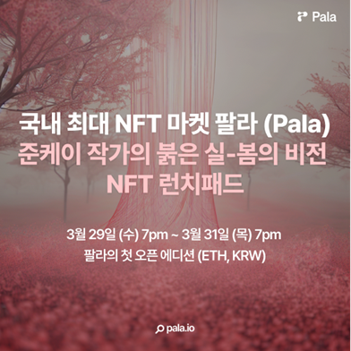 국내 최대 NFT 마켓을 운영하는 팔라(Pala)는 런치패드를 통해 오는 29일부터 LA와 뉴욕을 기반으로 활동하는 준케이(June K) 작가의 ‘붉은 실-봄의 비전’을 오픈 에디션 형식으로 NFT 민팅(발행)한다.