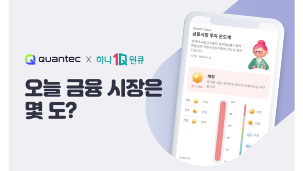 금융시장 투자 온도계는 그간 전문 투자자들에게 제공되던 콴텍의 위험관리 시스템을 활용해 하나은행 고객들에게 객관적 투자 판단 지표를 제공하고, 시장 변동성을 선제적으로 파악해 위험자산 비중을 조절할 수 있도록 돕고자 개발된 서비스다. 하나은행 모바일 뱅킹 앱 '하나원큐'의 '아이웰스'에 접속해 이용할 수 있다.