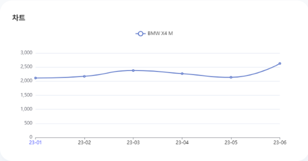 키워드 분석 플랫폼 팅서치를 활용해 분석해본 결과 BMW X4 M는 올해 1월부터 현재까지 꾸준한 검색량으로 관심을 보이고 있다.