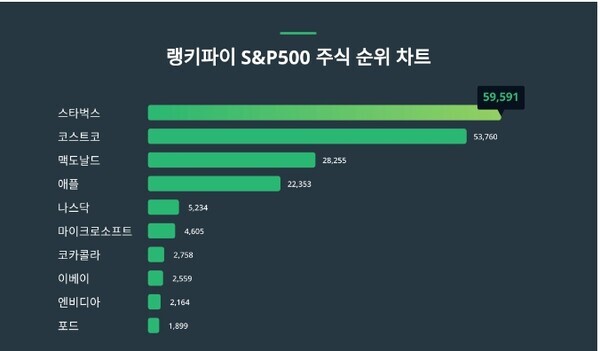 [CWN 김해남 기자] 스타벅스 주가가 S&P500 주식 트렌드지수에서 1위를 차지했다.