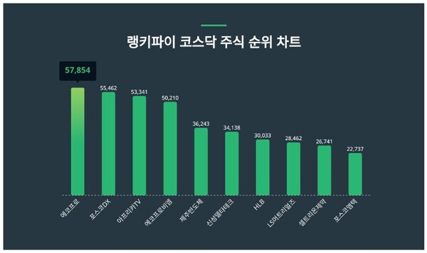 이번 조사는 랭키파이 빅데이터를 분석한 코스닥 주식 트렌드지수 2024년 1월 1주차 지표이다.