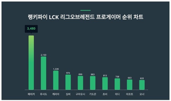 루시드는 2,133포인트로 전주보다 1,265포인트 상승해 2위를 차지했다. 이어 케리아, 실비, 구마유시, 기드온, 쵸비, 테디, 데프트, 오너가 뒤를 이으며 3~10위를 기록했다.