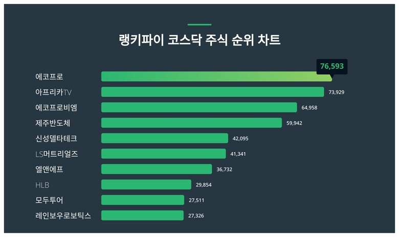 [출처: 랭키파이 코스닥 주식 트랜드 테이블]