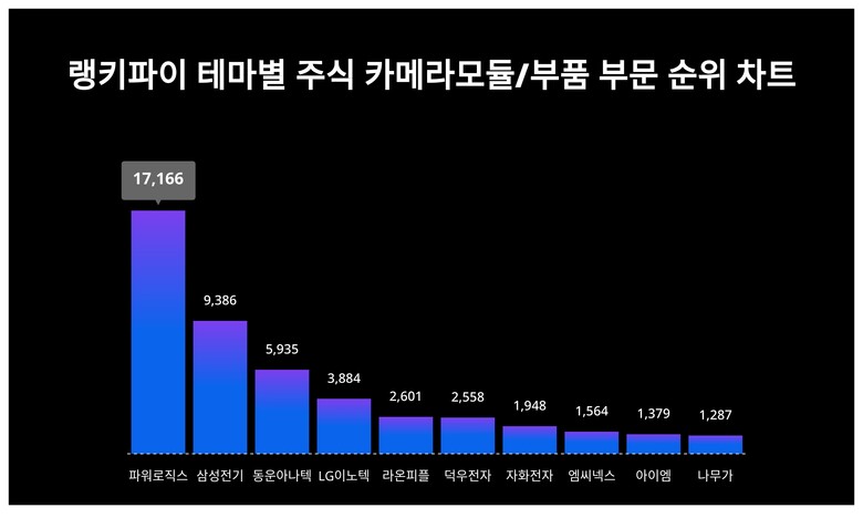 [출처: 랭키파이 테마별 주식 카메라모듈/부품 부문 트렌드 테이블]