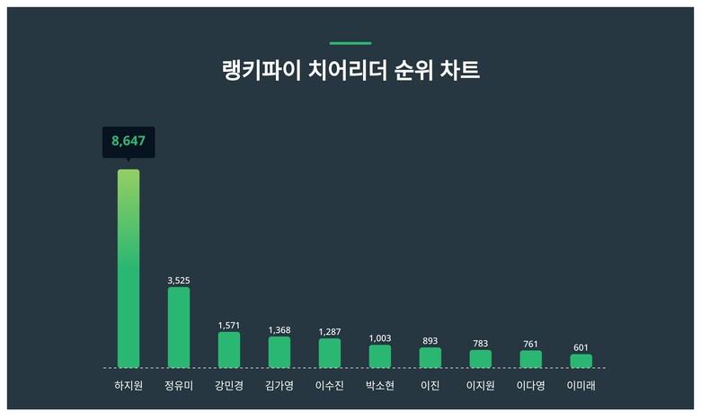 | 9 | 이다영 | 761 | 747 | 14 | 1.9% |