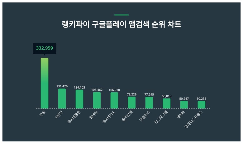 | 1 | 쿠팡 | 332,959 | 316,199 | 16,760 | 5.3% |