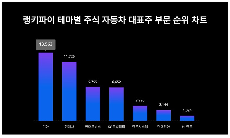 1위 기아 주가, 2위 현대차 주가, 3위 현대모비스 주가... 1월 4주차 테마별 주식 자동차 대표주 부문 트렌드지수 순위 발표