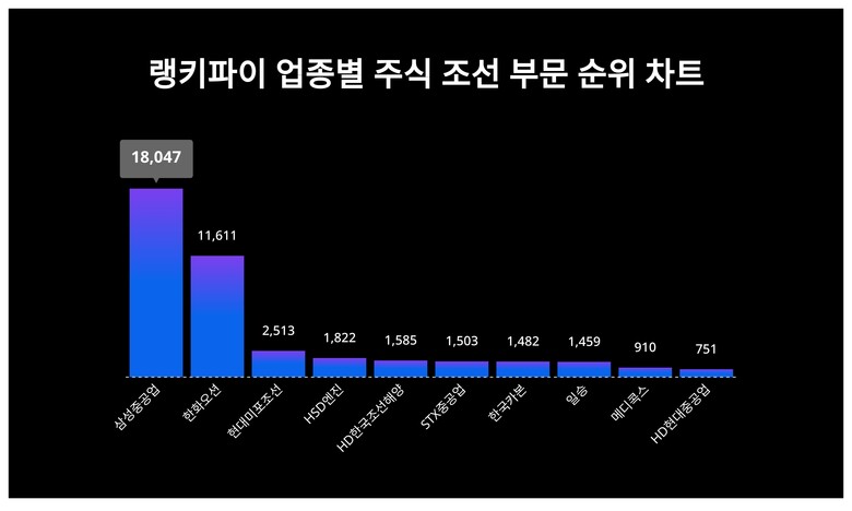 [출처: 랭키파이 업종별 주식 조선 부문 트렌드 테이블]