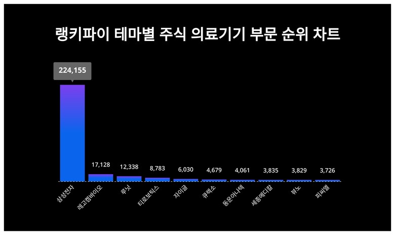 [출처: 랭키파이 테마별 주식 의료기기 부문 트렌드 테이블]
