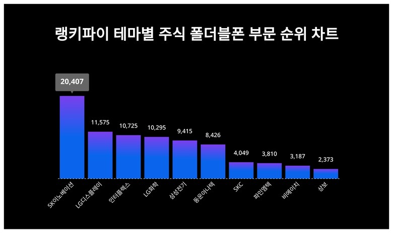 1위 SK이노베이션 주가, 2위 LG디스플레이 주가, 3위 인터플렉스 주가... 1월 5주차 테마별 주식 폴더블폰 부문 트렌드지수 순위 발표
