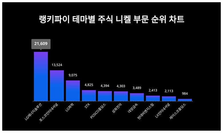 [출처: 랭키파이 테마별 주식 니켈 부문 트렌드 테이블]