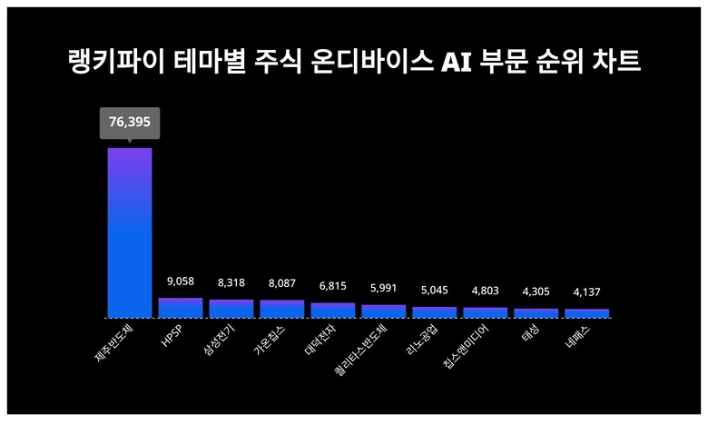 1위 제주반도체 주가, 2위 HPSP 주가, 3위 삼성전기 주가... 1월 5주차 테마별 주식 온디바이스 AI 부문 트렌드지수 순위 발표