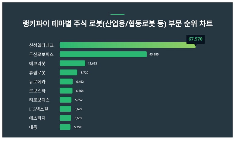 [출처: 랭키파이 테마별 주식 로봇(산업용/협동로봇 등) 부문 트랜드 테이블]