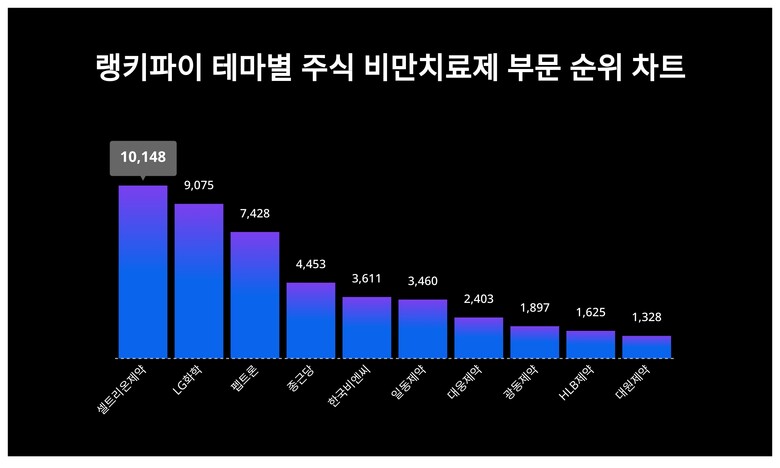 [출처: 랭키파이 테마별 주식 비만치료제 부문 트렌드 테이블]